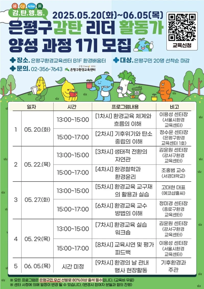 은평구환경교육센터 환경교육 '감탄리더 활동가 양성 교육' 모집 : 환경주제별 학습 등