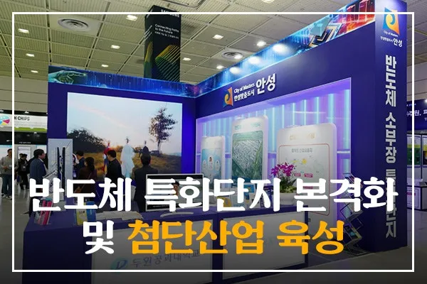 올해 안성시는 지난해 7월, 동신일반산업단지가 반도체 소부장 특화단지로 선정된 이후 반도체 허브도시를 본격화하며 적극적인 행보에 나섰다. 한경국립대 반도체 계약학과 운영지원과 한국전자통신연구원(ETRI)과의 업무협약, 산단의 안정적인 전력 공급을 위한 한국전력공사 상생 업무협약 등을 추진했고, 최근에는 반도체 대전(SEDEX 2024)에 참가해 우수 기업 유치를 위한 홍보관을 운영하며 특화단지 조성을 향해 총력을 다했다.
