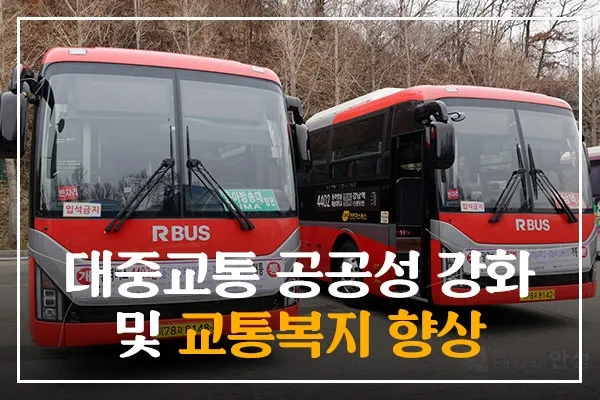 올해 안성시는 대중교통 향상과 교통복지 사업을 성공리에 추진했고, 어르신 무상버스 정책은 지난해 4월부터 본격화돼 신청자 수가 꾸준히 증가하고 있고, 올해 3월부터는 6세~64세까지의 저소득층으로 지원 대상을 확대했으며, 수요응답형 똑버스의 경우 서부권과 동부권을 시작으로 올해 5월부터는 운행권역을 북부권과 남부권으로 확대했다. 또한, 서울 강남을 오가는 신규 광역버스가 추가됐고, 송파행 광역버스 신규노선 확정과 안성종합버스터미널에서 평택 지제역까지 운행하는 노선도 확정됐다.
