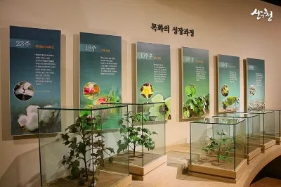 목화의 성장과정에 대한 설명과 모형, 사진자료를 보실 수 있습니다.