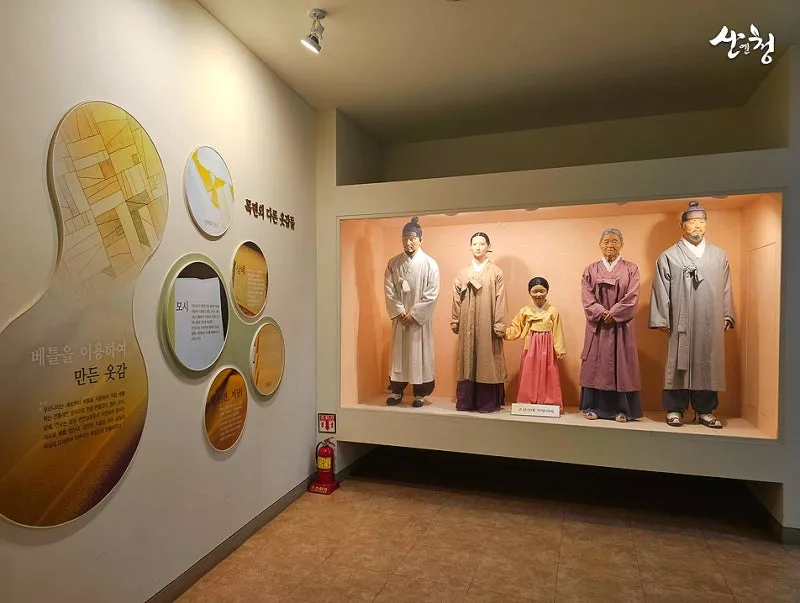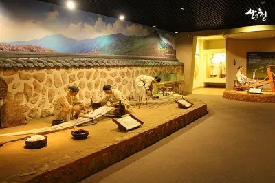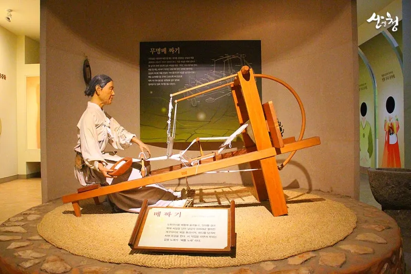 만드는지를 알 수 있는 무명베짜기 모습을 모형으로 제작하여