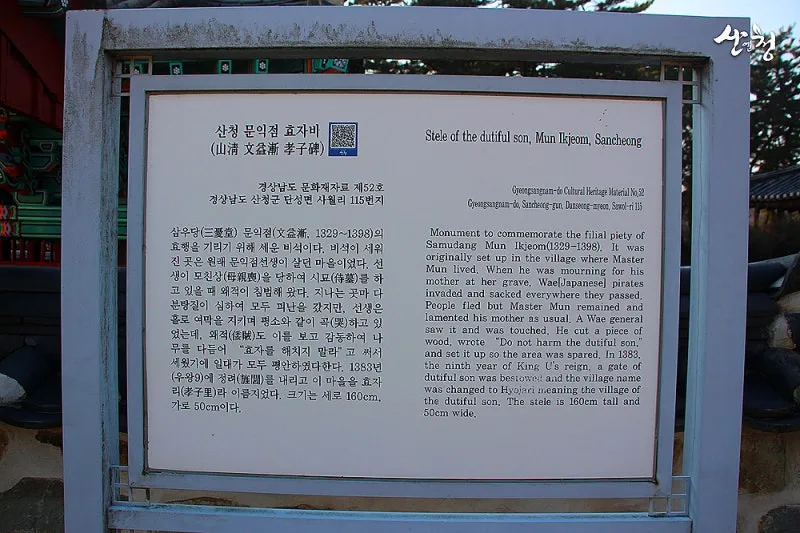 문익점 선생은 지역에서 효자로도 널리 알려졌습니다.