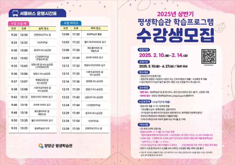 수강 신청 자격은 양양군에 주소를 둔 주민과
