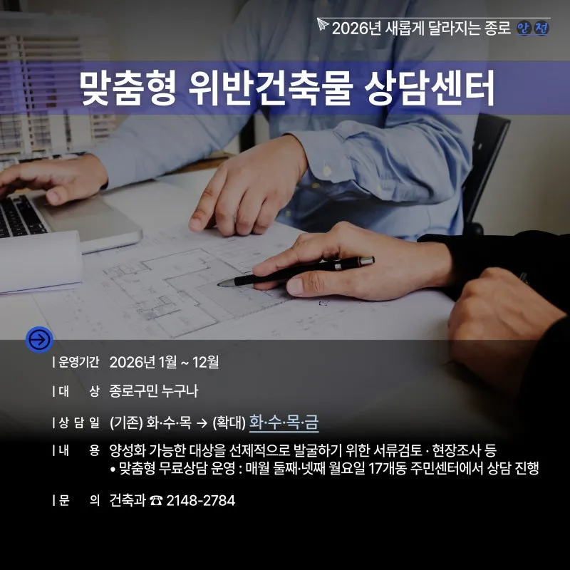 웰로22시간 전2026년 달라지는 종로 :: 안전 2026년 종로구가 새롭게 달라집니다 {"title":"2026년 달라지는 종로 :: 안전","source":"https://blog.naver.com/jongno0401/224140588297","blogName":"종로구 공..","domainIdOrBlogId":"jongno0401","nicknameOrBlogId":"종로통","logNo":224140588297,"smartEditorVersion":4,"meDisplay":true,"lineDisplay":true,"blogDisplay":true,"cafeDisplay":true,"outsideDisplay":false} #종로#종로구#종로통#종로구청#2026년_달라지는_종로#안전출처:https://blog.naver.com/jongno0401스크랩