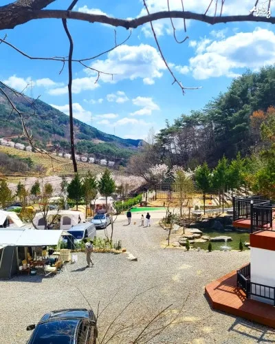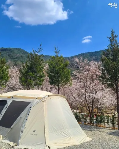 캠핑장 주변으로 가득 핀 벚꽃은 봄이 되면 꼭 이곳을 찾아야 하는 이유처럼 느껴지도 해요