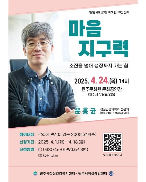 2025 원주시민을 위한 정신건강 강연 '마음 지구력'