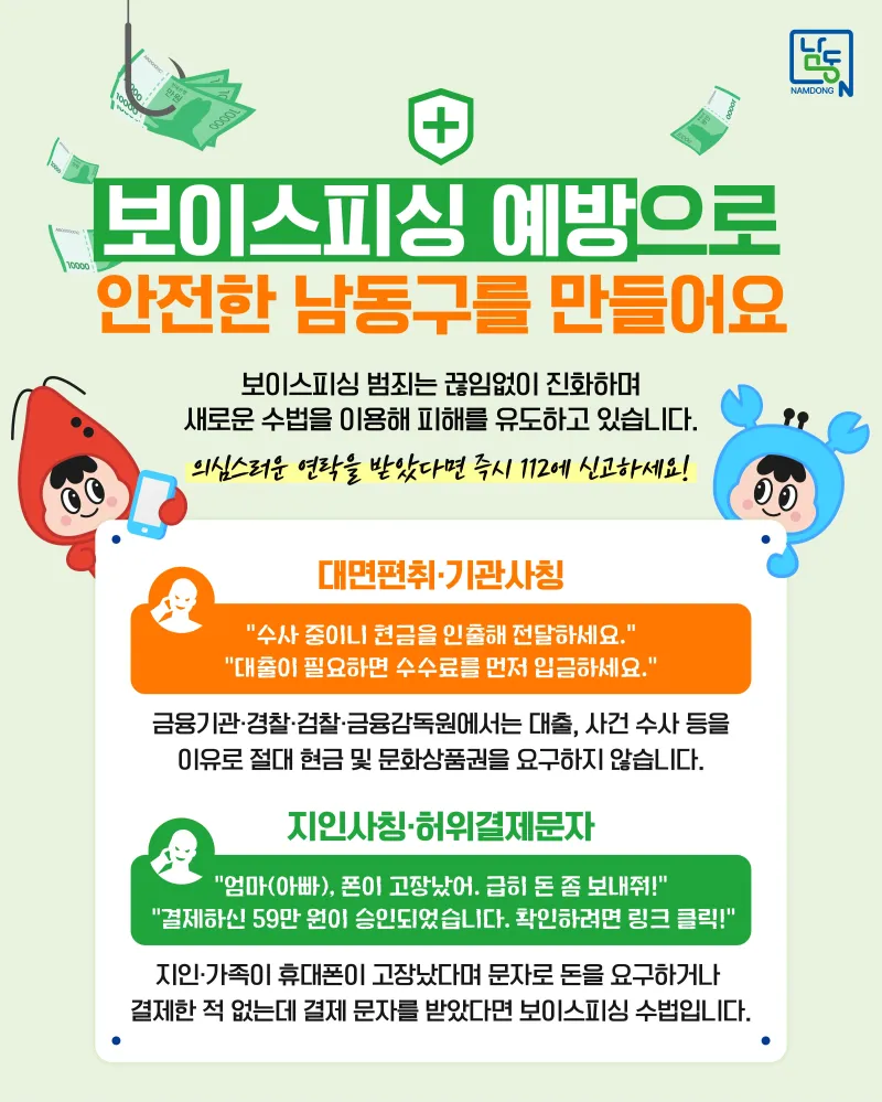 보이스피싱 예방으로 안전한 남동구를 만들어요