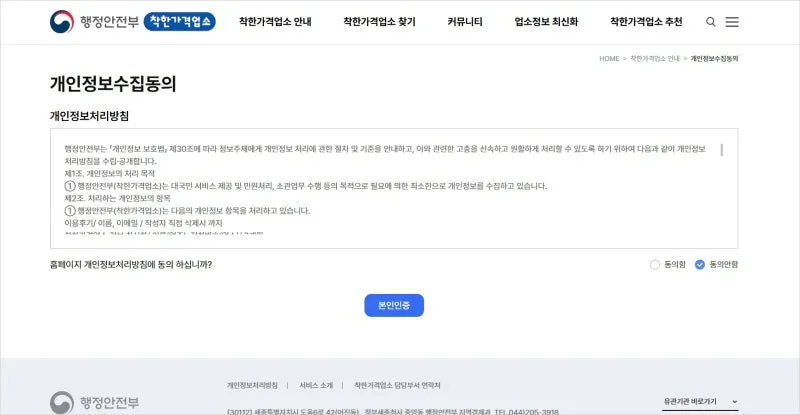 행정안전부 착한가격업소 홈페이지 > 착한가격업소 추천 > 착한가격업소 추천 등록