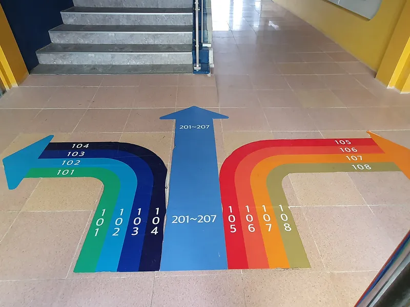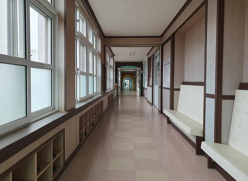 놀뫼종합체험센터는 이런 복도를 따라 교실이 이어져 있습니다.