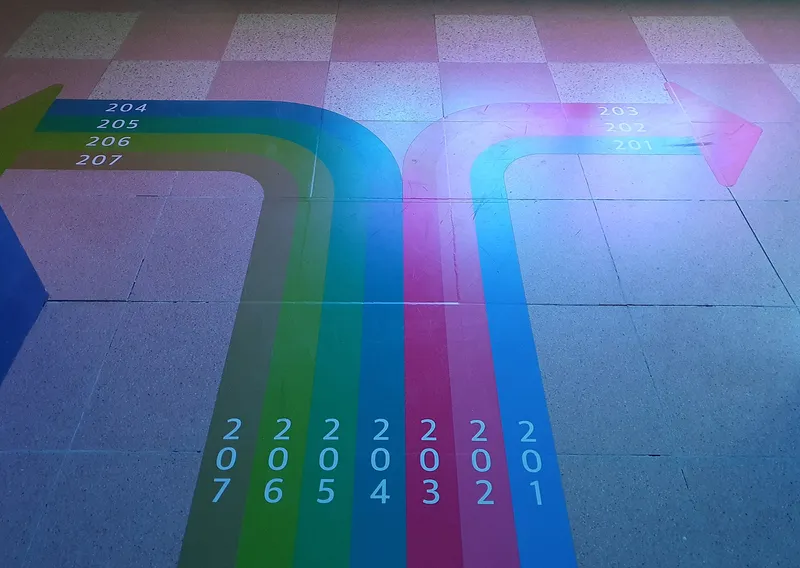 2층 계단참의 벽에는 A.I.가 우리 생활에서 어떻게 활용될 수 있는지 전시했습니다.