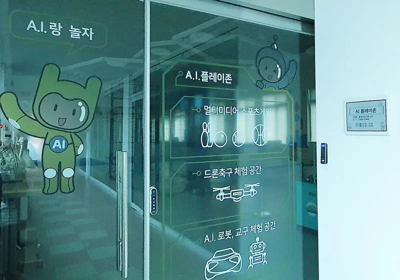 이곳에서는 멀티미디어 스포츠게임을 할 수 있고, 드론축구를 체험하는 공간이며, A.I.로봇 교구 체험 공간으로 이용하는 곳입니다.