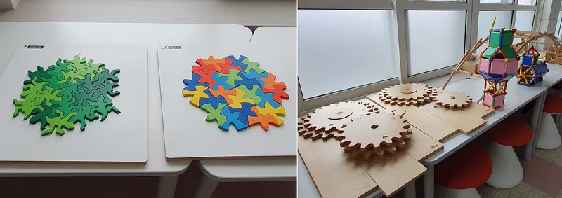 교실 안에도 바깥의 복도에도 재미있는 수학 교구가 가득합니다.