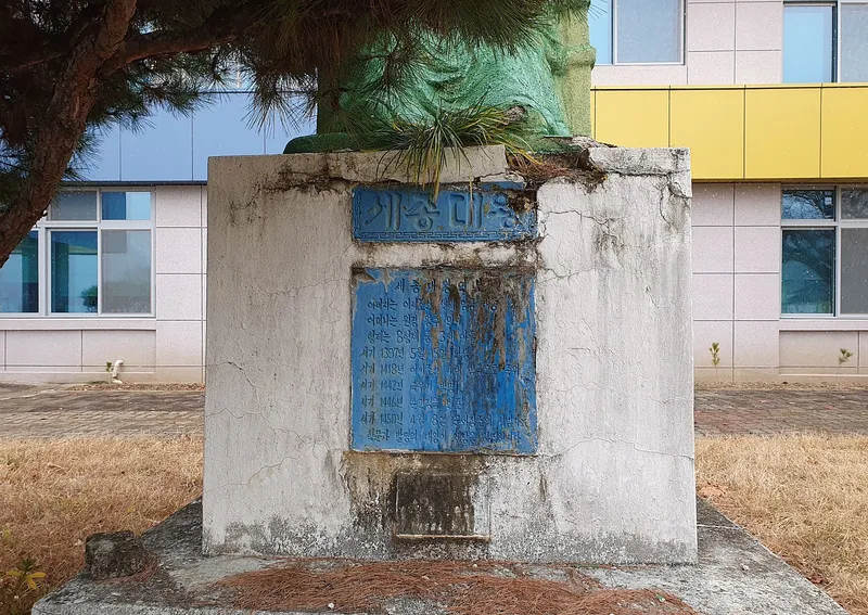 본동 교사동 앞에는 학교였던 시절의 세종대왕상도 남아있는데, 글씨는 희미해졌지만 1986년 3월에 세운 세종대왕상이라고 합니다.