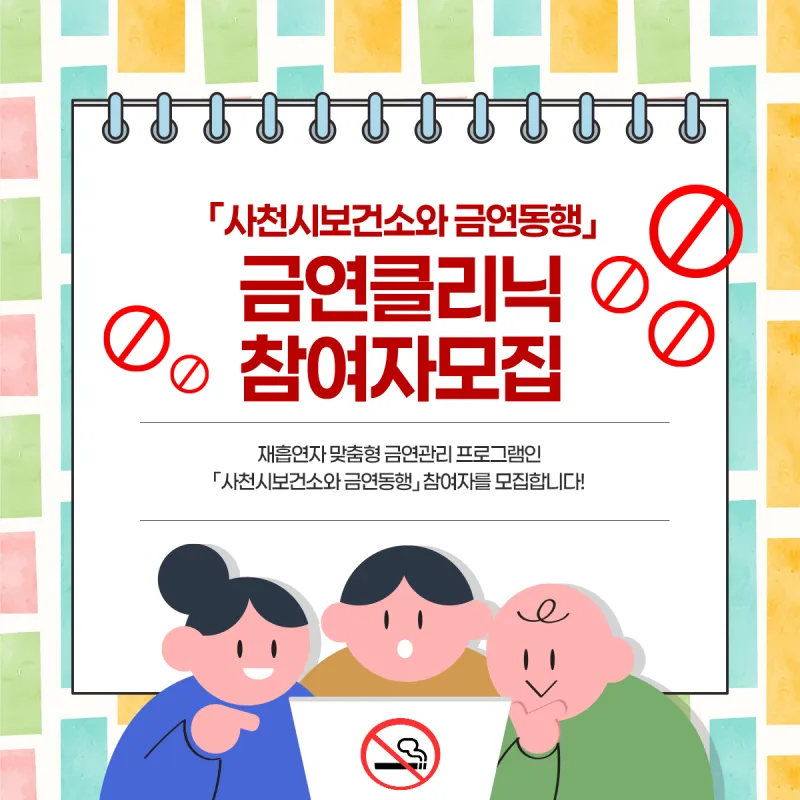 재흡연자 맞춤형 금연관리 프로그램인 「사천시보건소와 금연동행」 참여자를 모집합니다.