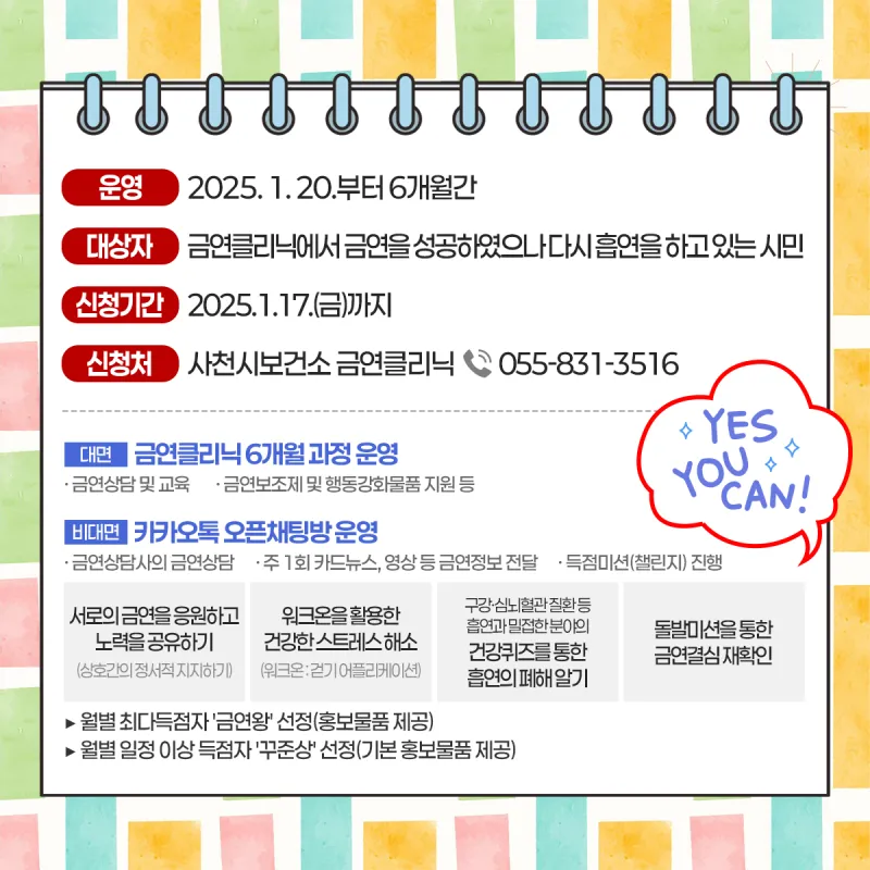 "금연의 성공, 이번에는 사천시보건소와 함께입니다!"