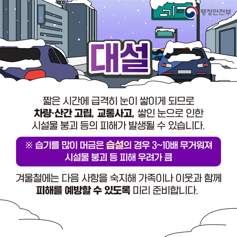 전북 한파 · 대설 특보 - 대설 대비 국민행동요령 알아보기