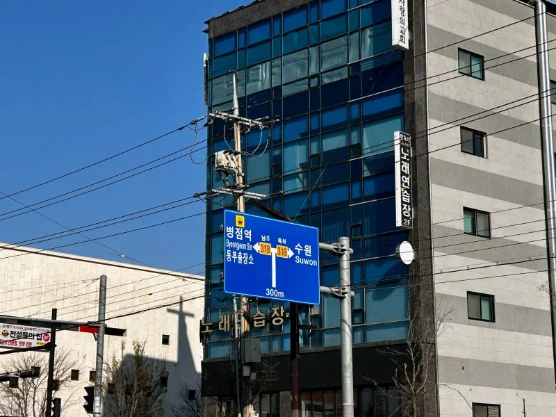 걷다 보니 남쪽으로는 병점역, 동부출장소, 북쪽으로는 수원역을 가리키는 이정표가 보이네요~