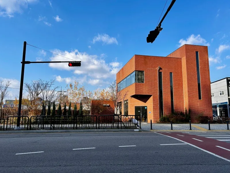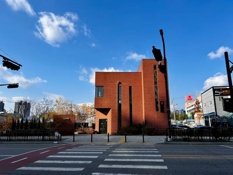 벽돌 색깔의 카페가 눈에 띄네요.