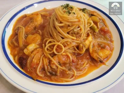 칠리새우스파게티 약간 매콤한 소스가 맛있어서