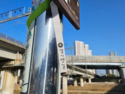 앞에 왕숙교가 보이네요. 💦왕숙천 쪽으로 길을 건너니 경기옛길 리본을 발견했어요.