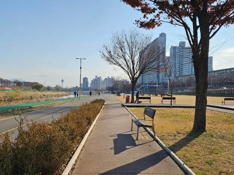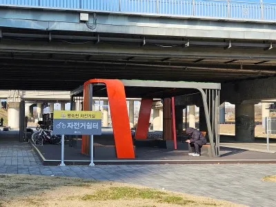 왕숙천 입구에는 🚲자전거 쉼터와 🏋️♂️운동기구가 설치되어 있어요. 추운 날씨지만 🧗♀️운동하는 시민들이 꽤 많으시더라고요.