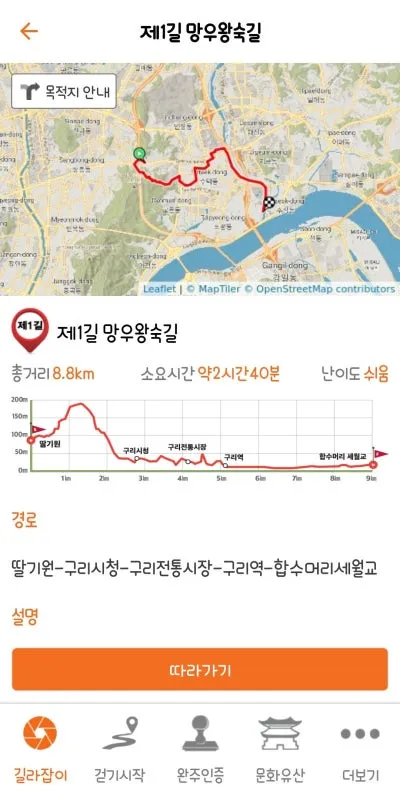 만약 헷갈리신다면 경기옛길 앱을 참고하시면 되고요.