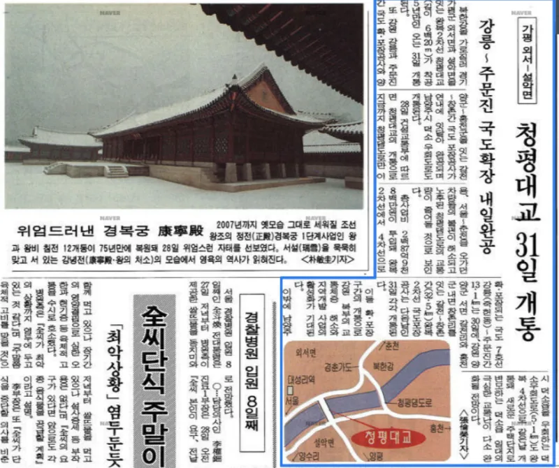 당시 지역사회에 있어 가장 큰 사회적 이슈였던 신청평대교 개통소식