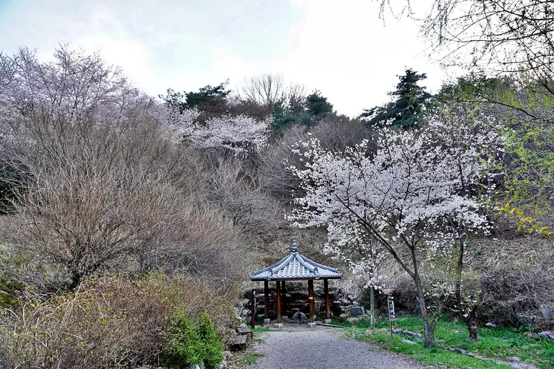 산 정상까지 조금은 힘든 코스로 한 바퀴 돌아본다면 빠른 걸음으로 1시간 코스입니다. 봄꽃과 사색을 즐기는 느린 여행을 선택하여서는 꽃길과 생태연못을 따라 봄을 즐깁니다.