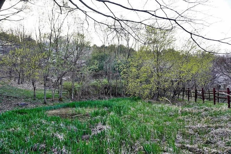 생태숲의 봄은 꽃과 잡풀로 시작되어 가장 늦게 나무에 찾아오네요. 유초록풀이 지면을 장식하고 벚꽃이 만개한 사이로 버드나무 등이 이제서야 새잎을 올립니다.