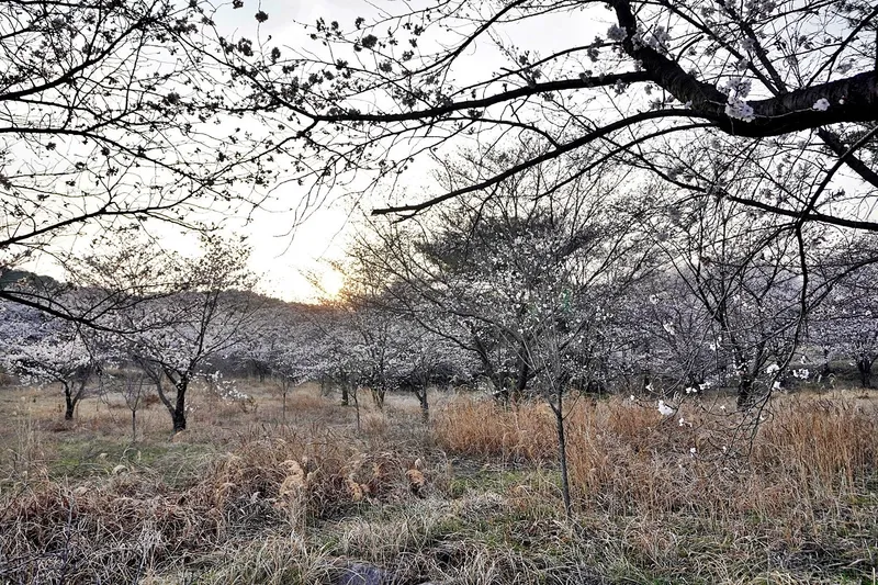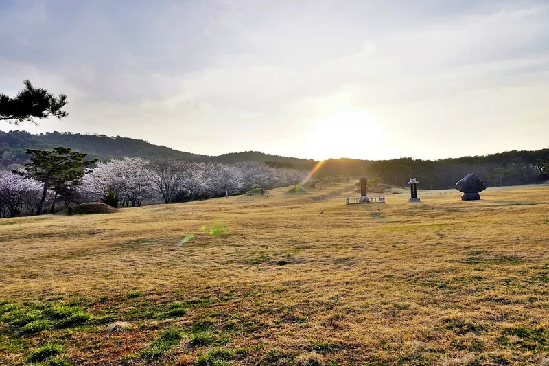 덕수 이씨 묘역 사당이 있는 주차장에 주차 후 완만한 평지 길을 따라 봄 풍경을 즐깁니다. 해가 질 무렵 덕수 이씨 묘역 너머로 저녁노을이 물듭니다.
