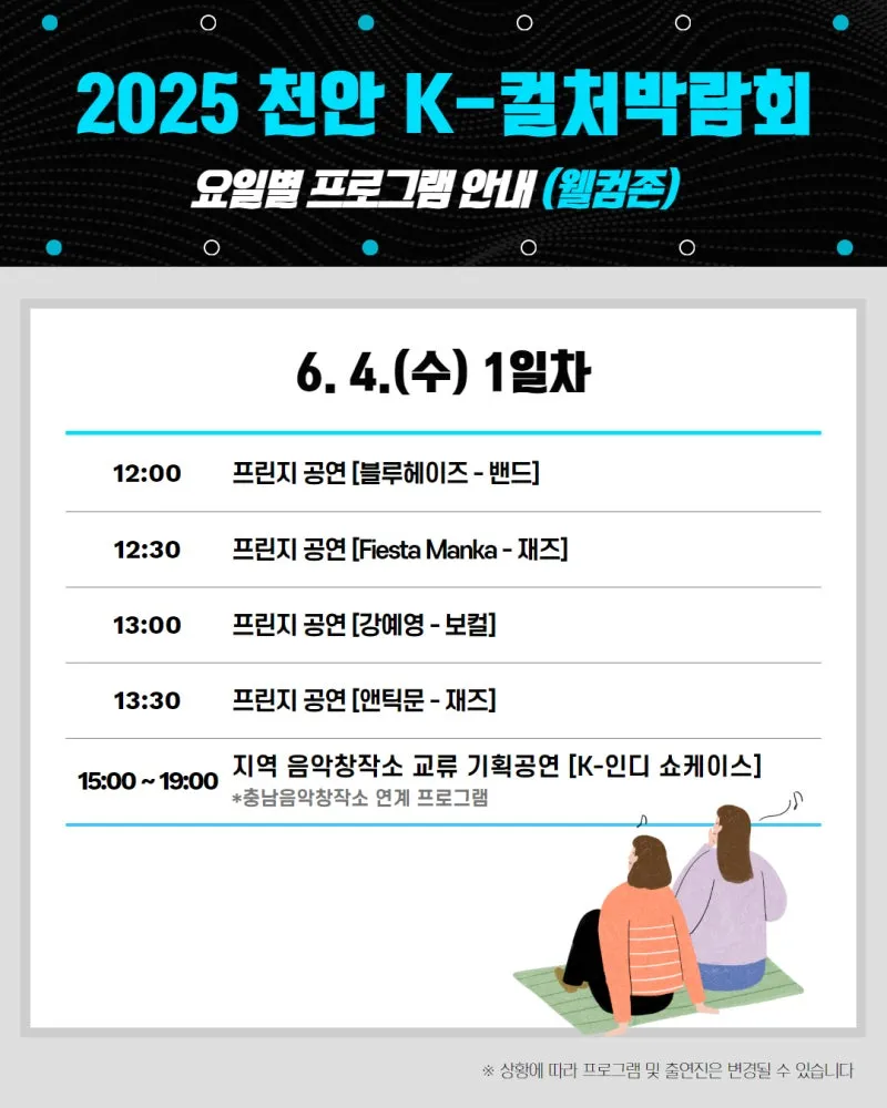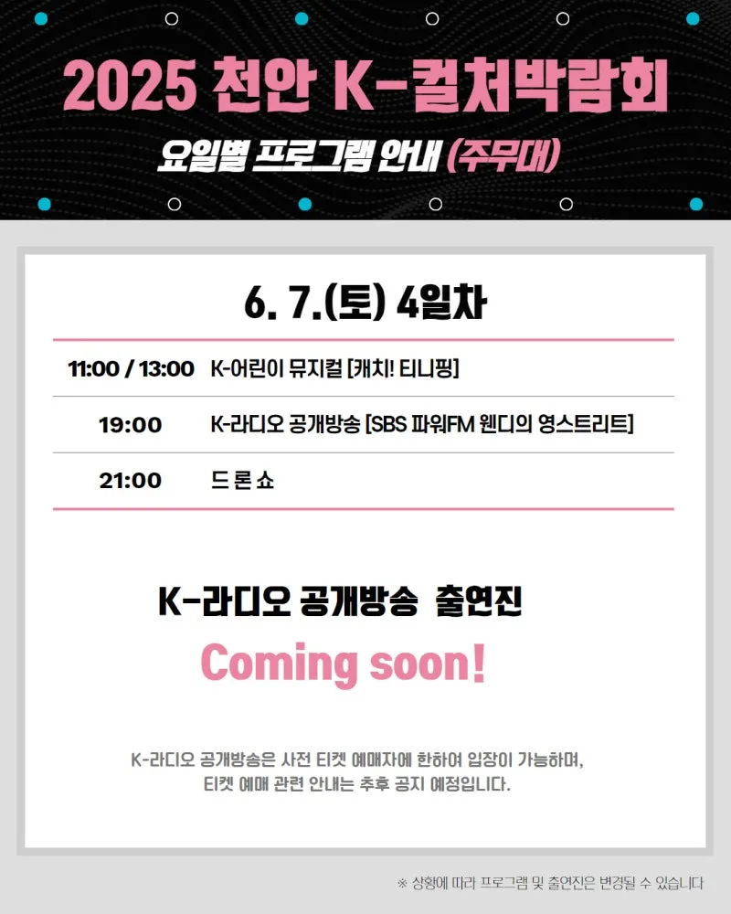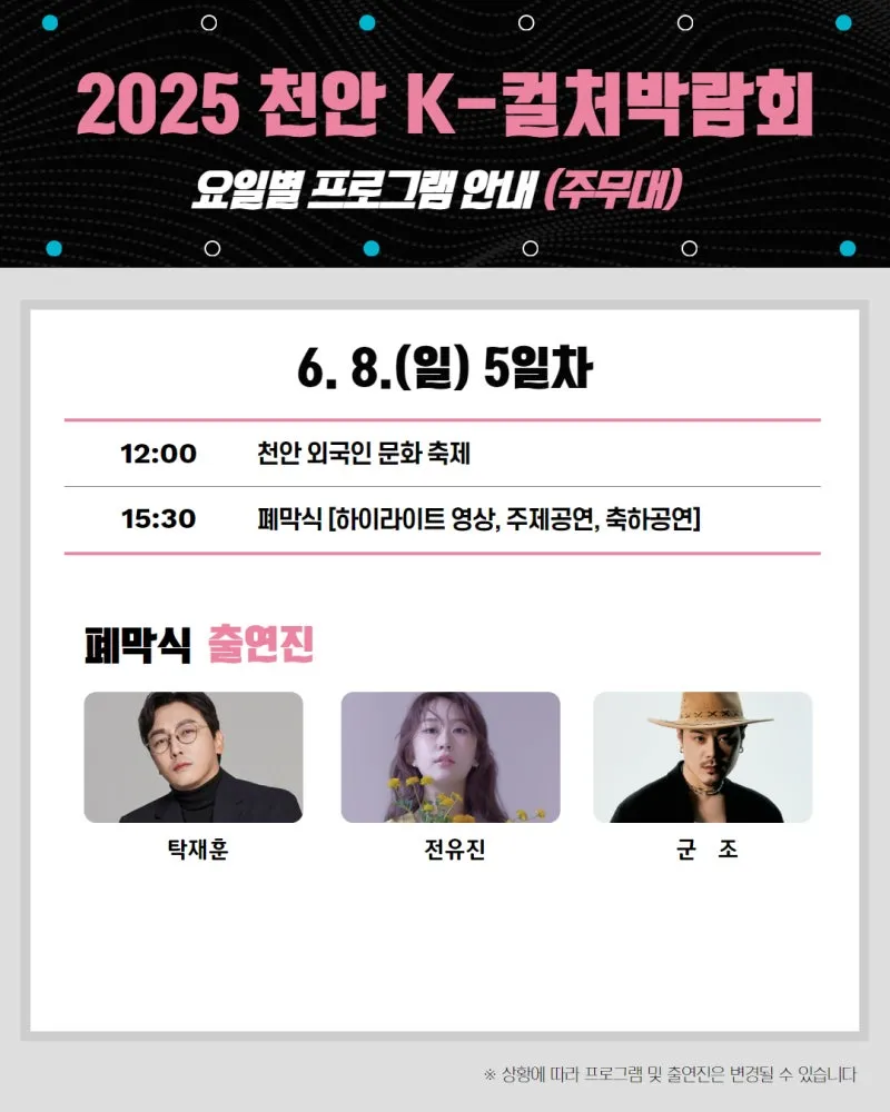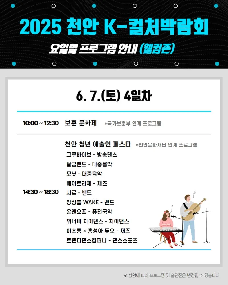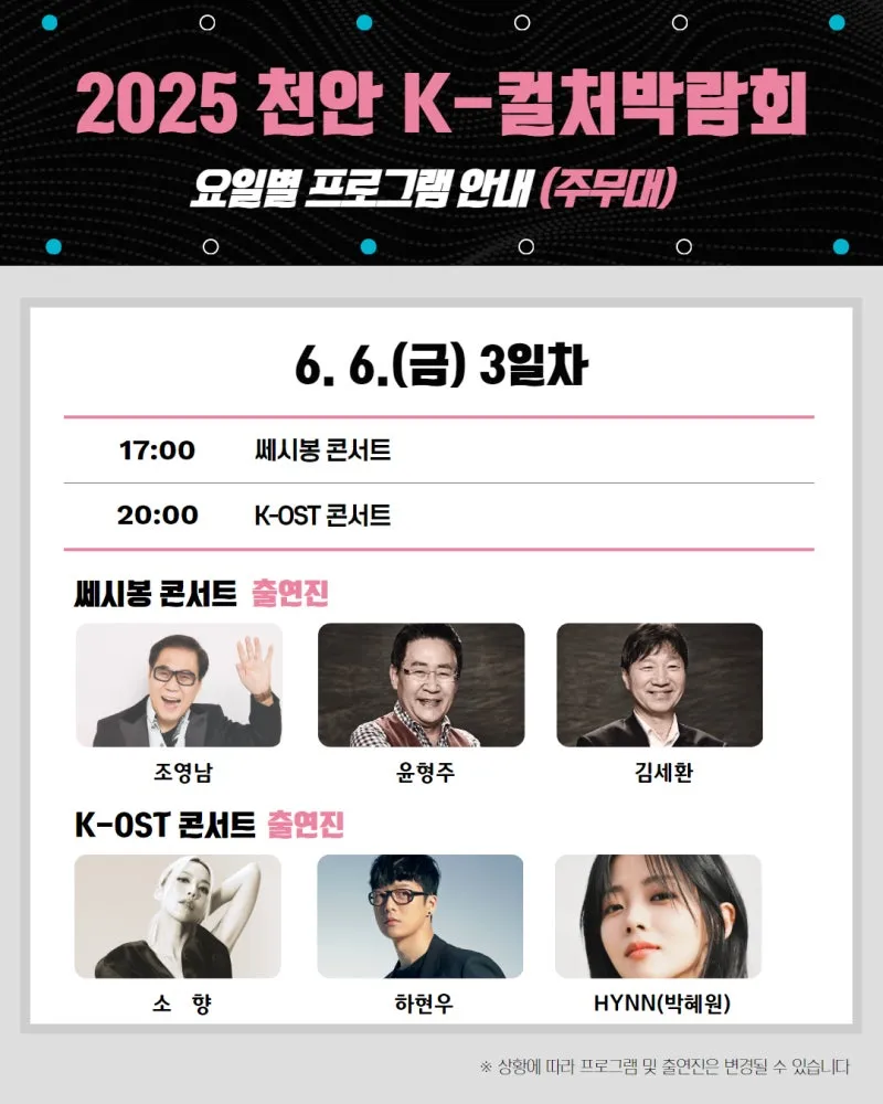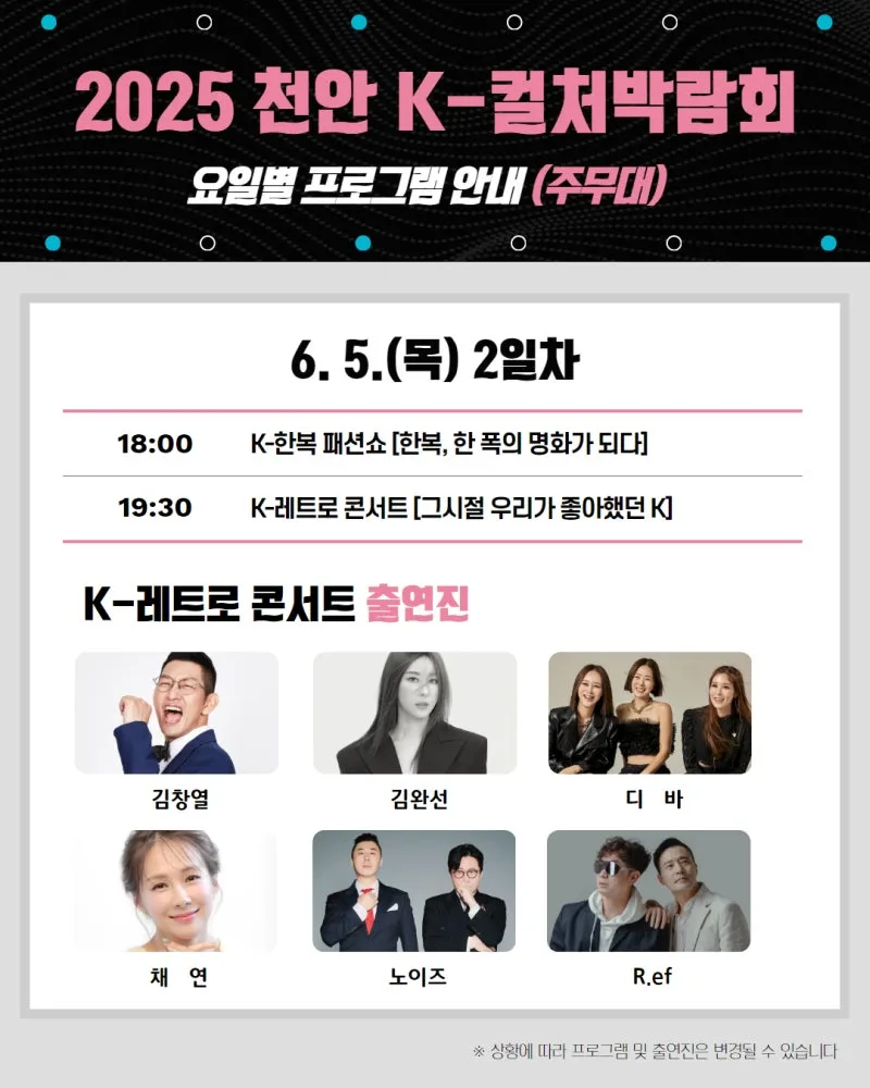 MyK FESTA와 함께 하는 ‘2025 천안 K-컬처박람회’ <주무대/웰컴존/챌린지존 요일별 프로그램 안내>