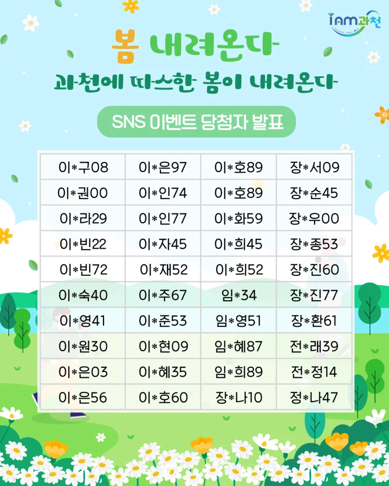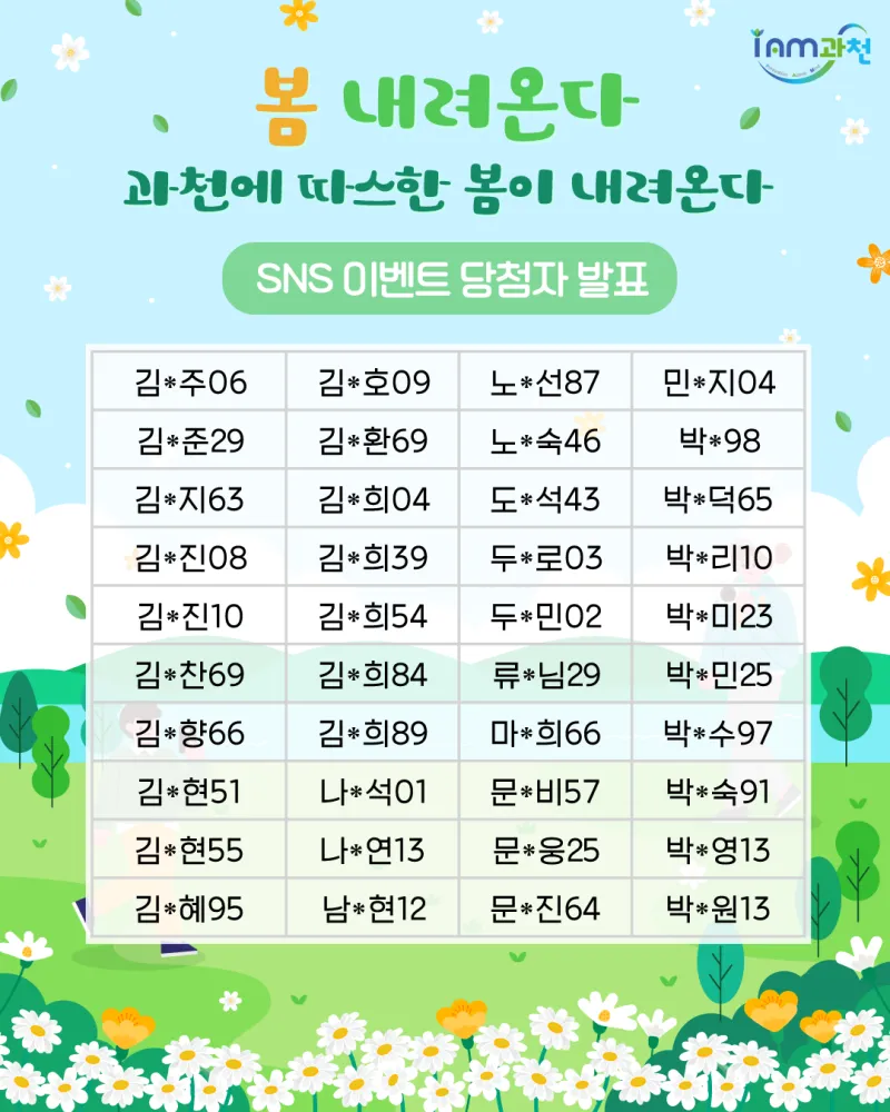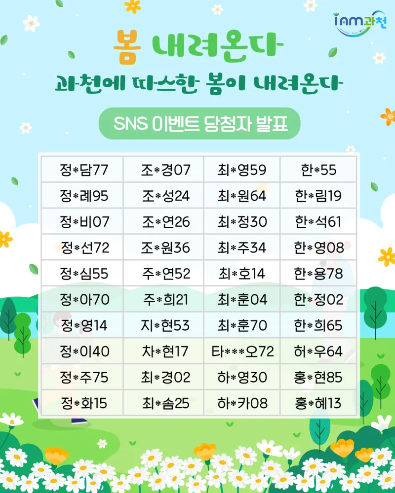 [SNS이벤트 당첨자 발표] 봄 내려온다~ 과천에 따스한 봄이 내려온다~