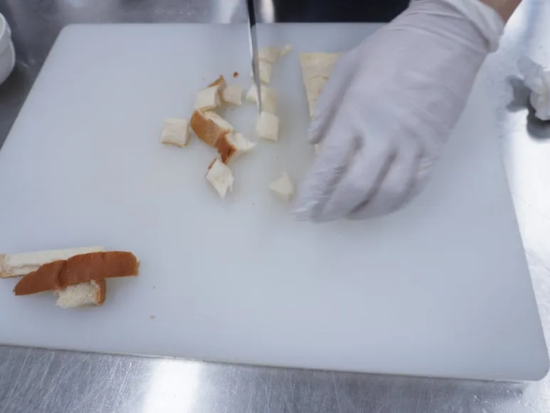 스프에 토핑으로 얹을 크루통까지 손질해요