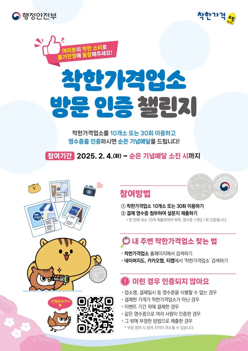 착한가격업소 발굴 또는 방문인증하면 순은 메달을 드려요!