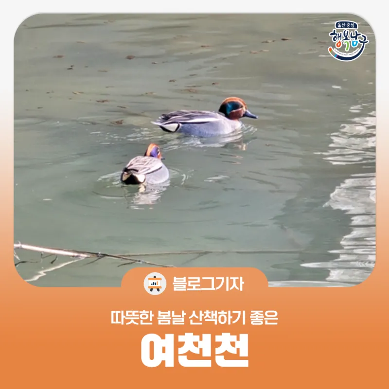 산업도시에서 생태 도시로 거듭나고 있는 울산답게 여천천에서 많은 동, 식물들도 관찰이 가능하답니다.