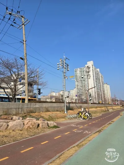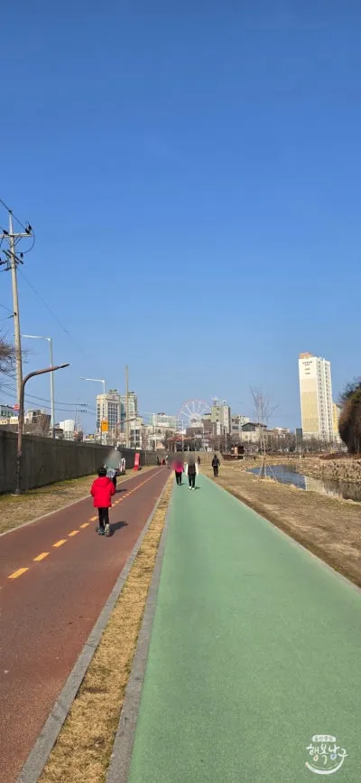 날씨가 따뜻해서인지 많은 분들이 산책, 조깅, 자전거 타기, 킥보드 타기, 반려견 산책시키기를 하러 나오셨더라고요.