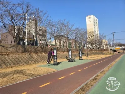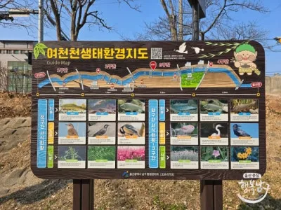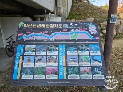 운동 기구도 두 군데에 설치되어 있어서 편리하게 사용이 가능합니다. 여천천 생태 환경지도도 있어서 궁금증을 해결하기에도 좋답니다.