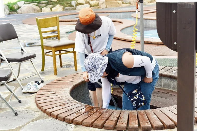 족욕 전 반드시 세족장에서 발을 씻고 이용합니다.