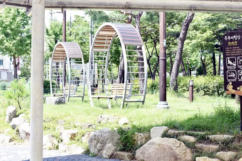 발바닥 모양으로 무늬가 새겨진 지압 길을 걸어보셔도 좋습니다.
