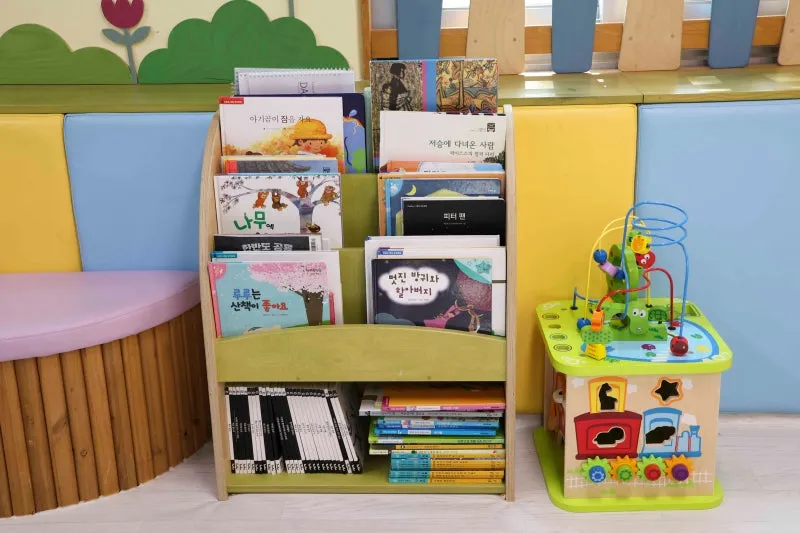 편하게 바닥에 앉아서 책도 볼 수 있고 무료 이용 가능한 교구도 비치되어 있어요.