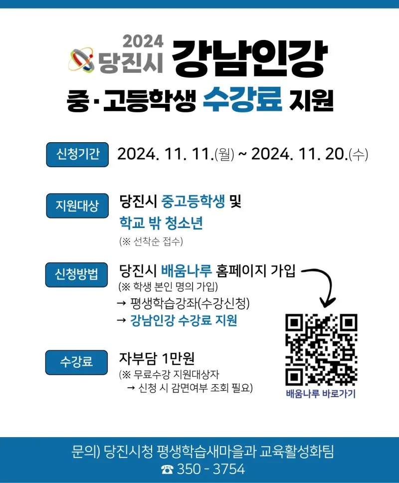 2024 당진시 강남인강 중ㆍ고등학생 수강료 지원 안내