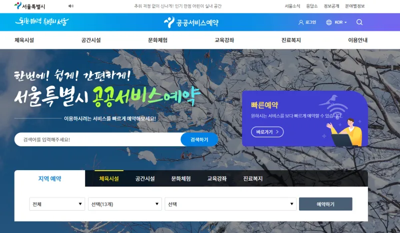 서울시 공공서비스예약 누리집에서