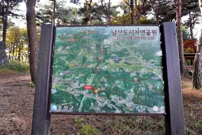 남산 도시자연공원은 홍성군의 녹색 숲으로 소나무 군락을 따라 오르게 됩니다.