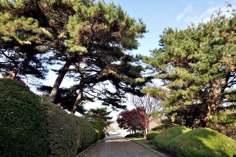 수종을 알 수 없는 나무가 일렬로 이어지며 멋진 풍경을 연출합니다.