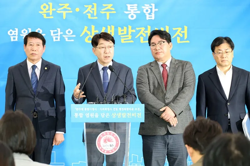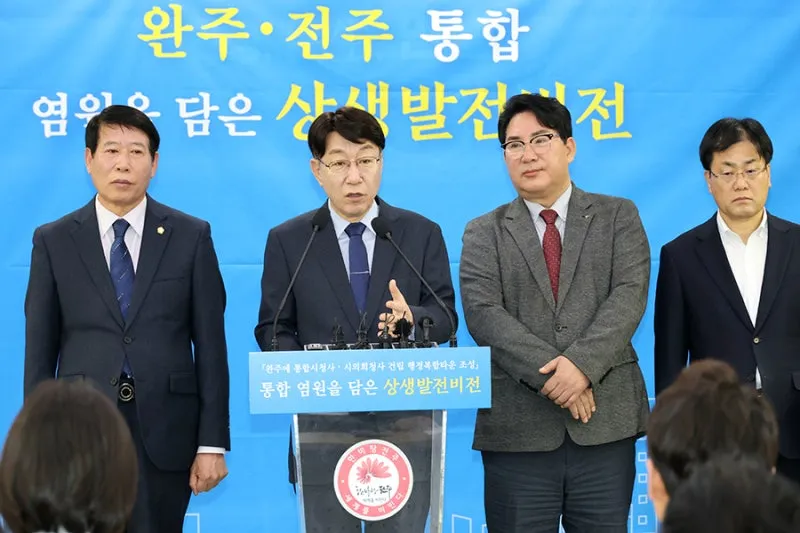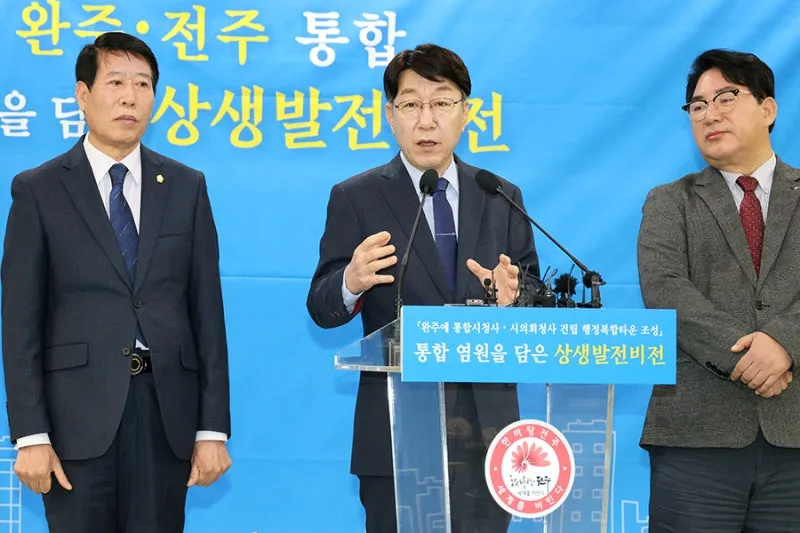 우범기 전주시장은 “통합은 지방소멸의 위기 앞에서 더 이상 미룰 수 없는 생존의 문제”라며 “이는 한쪽이 작아지는 것이 아니라 함께 커지는 것이며, 완주가 오히려 전주의 중심이 되고 전주도 함께 발전하며 전북이 진정한 특별한 자치도로 거듭날 다시 없는 기회가 될 것”이라고 강조했다.
