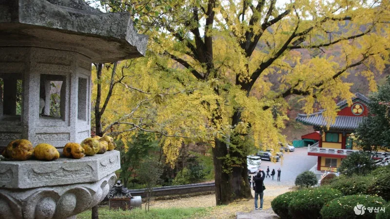 경남 양산시 단풍 명소 영축산 통도사 백련암 600년 은행나무
