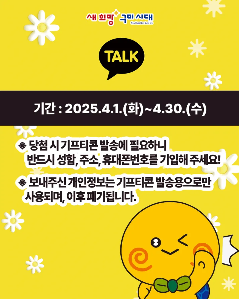 💛💛💛2025년 4월 구미시 카카오톡 친구 인증 이벤트💛💛💛