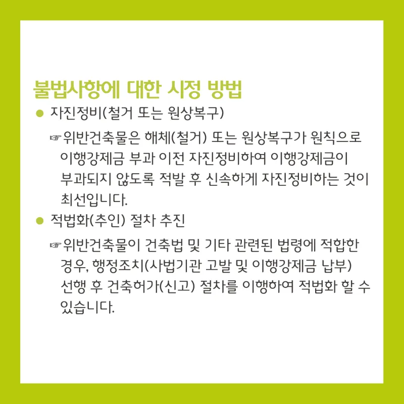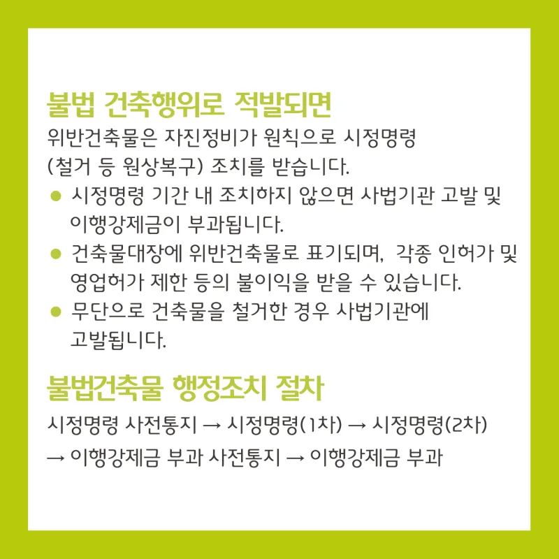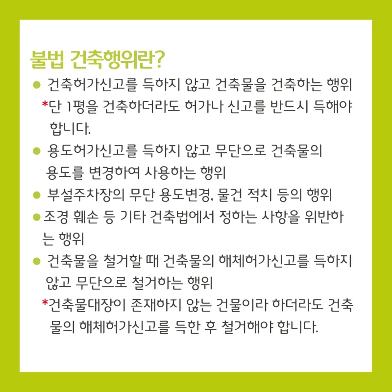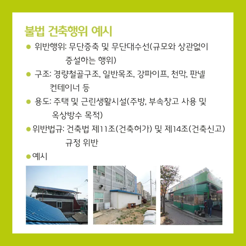 불법 건축행위(무단신축, 무단증축, 용도변경)는