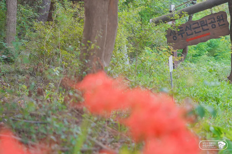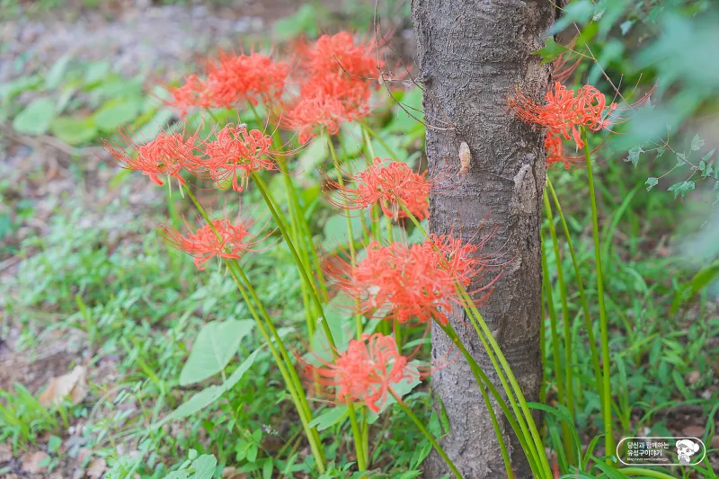 성두산근린공원에서 걷다 보니 가로수 길 사이로 상사화가 피어 있었는데요. 울긋불긋한 단풍을 연상케 하는 붉은 꽃을 통해서 멋진 가을의 분위기를 실감해 볼 수 있었습니다.