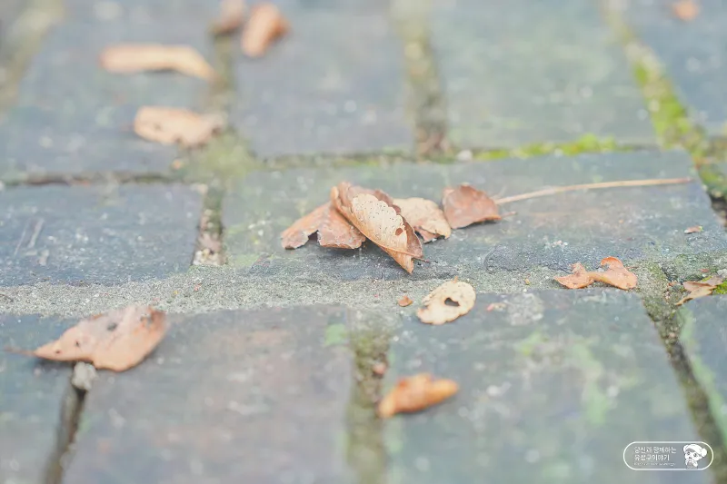 성두산근린공원 안내 표지판과 이어진 우측 계단으로 길이 이어져 있습니다. 계단으로 오르면 가을 느낌이 풍기는 나뭇잎을 볼 수 있는데요. 돌연히 바뀐 날씨와 숲의 풍경이 점점 달라져서 계절이 변화를 알아차려 볼 수 있습니다.